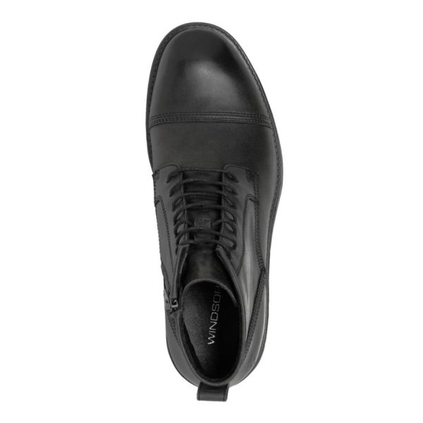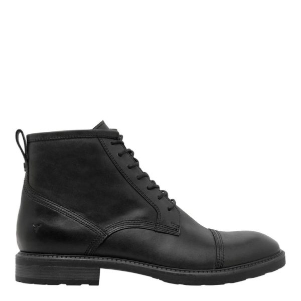 Black lace-up boots designed for a casual yet distinctive appeal. Featuring a seven-eyelet facing, toe cap, and twin rows of stitching detail, Abel sets the standard for contemporary style. The inside zip ensures effortless pulling on.