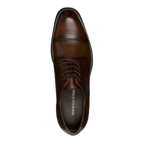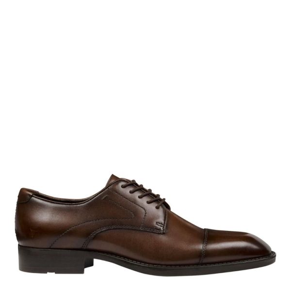 Brown leather dress shoes feature a five-hole lace-up, toe cap, and decorative stitching. With a flexible T.P.R sole, leather veneer heel and non-leather lining, they ensure all-day comfort and durability. The soft almond toe and 30 mm heel height offer both style and comfort.