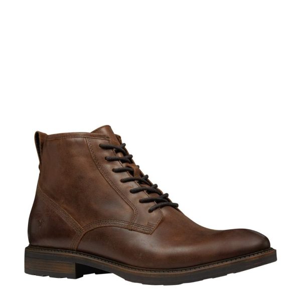 Windsorsmith’s brown lace-up boots for men, featuring a seven-eyelet facing with a plain front. The meticulous design includes twin rows of stitching detail, while the inside zip ensures ease of pulling on.