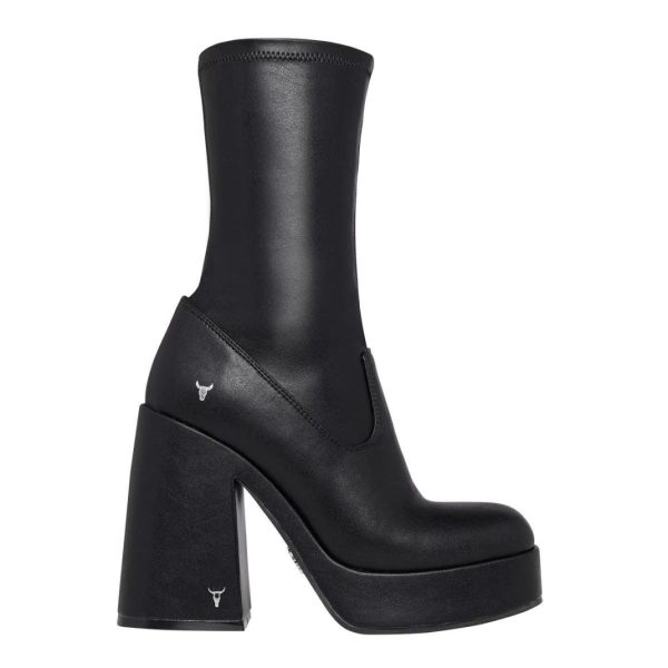 - Black non-leather upper sock boots