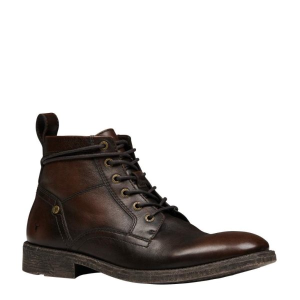 These boots feature a six-hole tie lace-up derby boot style with an inside zip for convenience. Crafted from two-tone distressed leather, they offer a vintage feel that adds character to any outfit. The sole finish is intentionally made to look vintage.