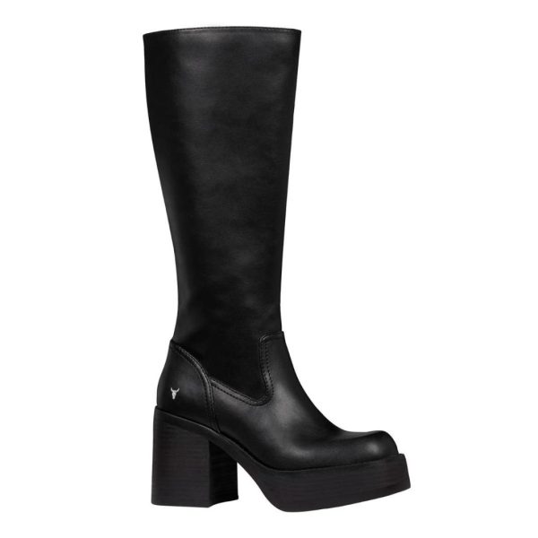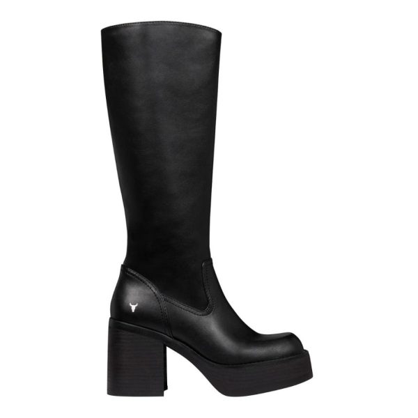 Featuring a sleek non-leather upper and lining, a bold 90mm block heel, and a 35mm platform, these boots offer both height and stability. The soft square toe shape and full-length zipper ensure comfort and easy wear.