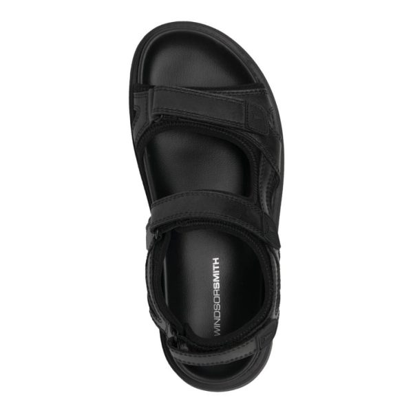 Comfort and style with our men’s black leather sandals, crafted from premium leather with a distinctive wax/oil distressed finish, these black men’s sandals have three adjustable Velcro straps highlighting the iconic Windsorsmith Bull logo.