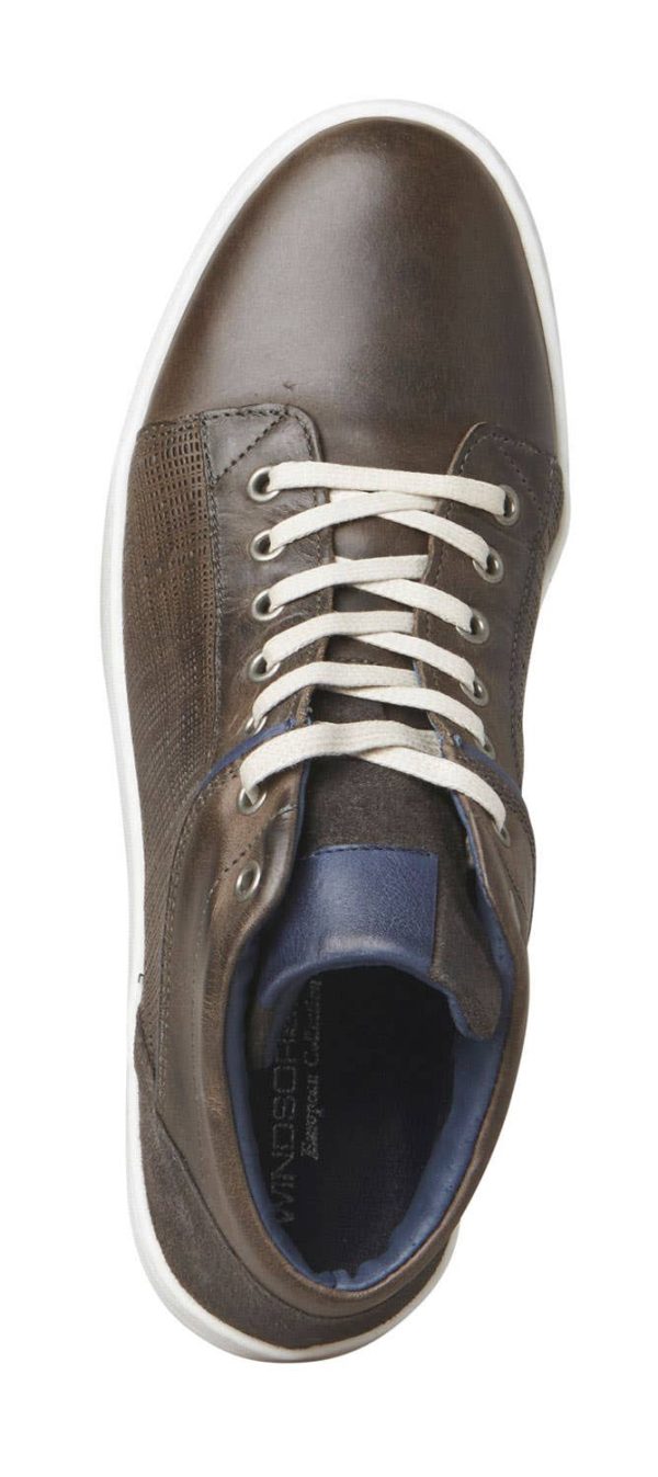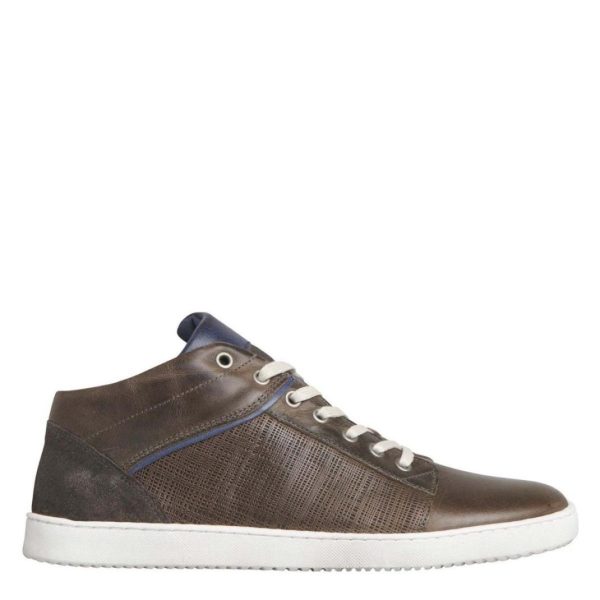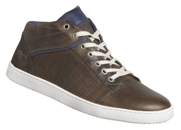Casual boots with a low-cut topline. These grey men’s boots feature a lace-up design, textured leather finish with binding detail, and durable low-profile sporty rubber soles.